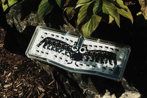 Stacked acrylic case for owl, high-profile with all metal fixture and bumpons. Acrylic plates ship with protective film intact